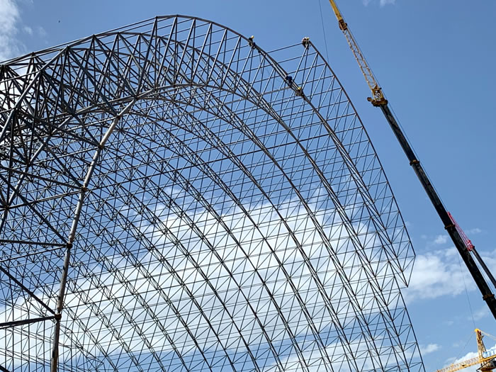 (2)网架加工前应对现场尺寸进行复测,确认无误后方可进行加工、安装;网架制作、运输、安装应遵守《空间网格结构技术规程》JGJ7-2010、《钢网架十堰螺栓球节点》JG/T 10-2009、《钢网架十堰螺栓球节点用高强度螺栓》 GB/T 16939-2016、《十堰钢结构十堰工程十堰施工规范》 GB50755-2012、《十堰钢结构十堰工程十堰施工质量验收标准》 GB50205-2020。